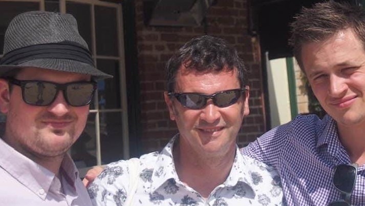 (Image: Pete in the middle with his son on the left, in Australia, after everyone said he would never get on a plane)