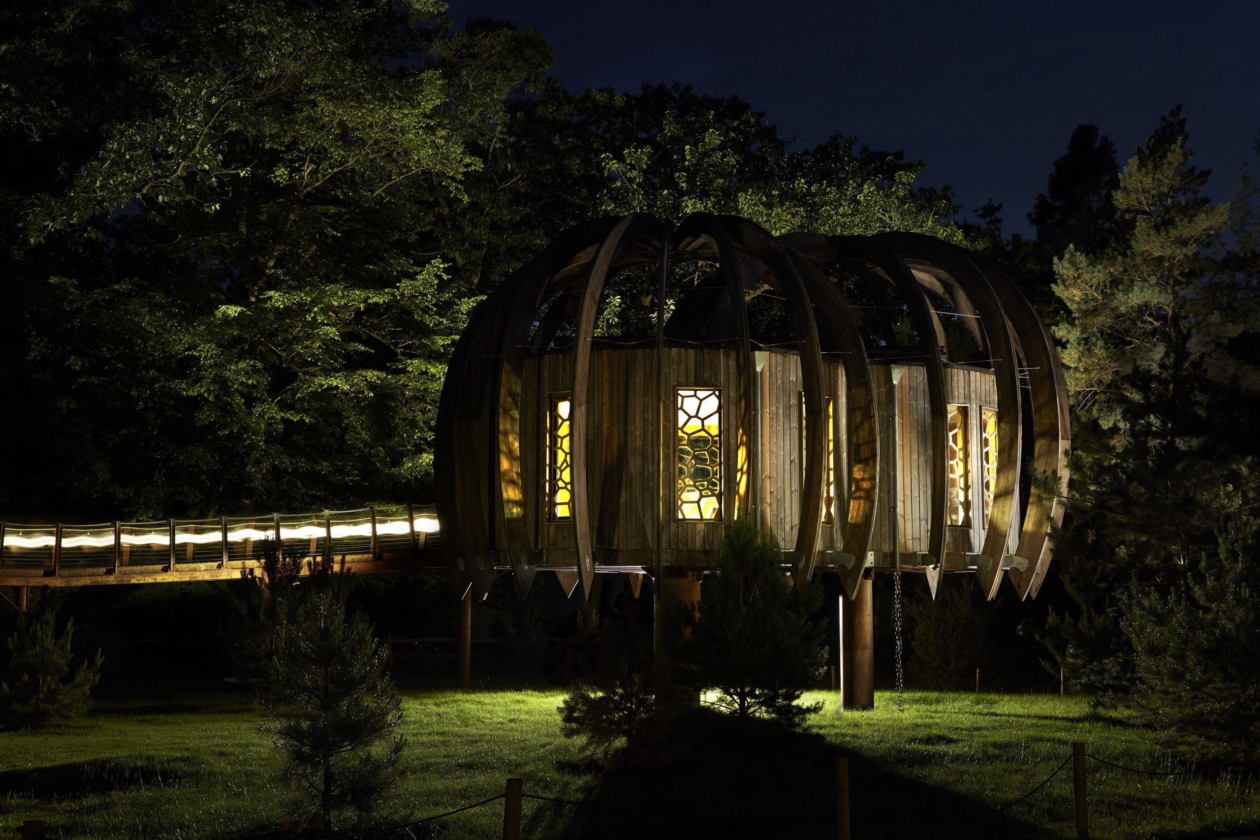 The Woodland House, which opened to the public on 22 July in Kew Gardens as a space dedicated to learning about and celebrating native woodland, was developed and donated by Quiet Mark to combine the latest acoustic and architectural design; to chime harmoniously with both the eye and the ear and offer a peaceful, beautiful representation of the value of quiet. It echoes the serenity and naturality of the woodland setting, the smooth lines and flow of the tree limbs.